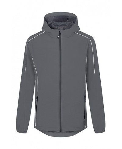 Leichte Jacke. Merkmale dieser Jacke: Kapuze, wasserdichte Reißverschlüsse, Kinnschutz, verlängerter Rücken mit abgerundetem Saum, zwei seitliche Reißverschlusstaschen, eingenähter Schlüsselring in der Seitentasche, reflektierende Paspeln und Reißverschlussschieber, Teilungsnähte, neutrales Größenetikett. Die Jacke ist atmungsaktiv und wasserdicht und hat einen modernen Schnitt.