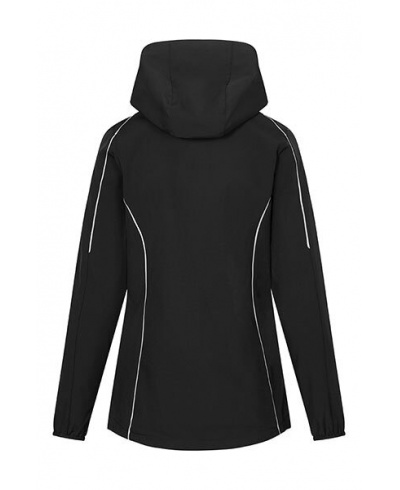 Die leichte Kapuzenjacke verfügt über wasserdichte Reißverschlüsse, einen Kinnschutz, einen längeren Rücken mit abgerundeten Säumen und zwei seitliche Reißverschlusstaschen. Die Jacke verfügt über reflektierende Paspeln, Reißverschlussschieber, Teilnähte und ein neutrales Größenetikett. Der moderne Schnitt unterstreicht stilvoll Raffinesse, Zweckmäßigkeit und Eleganz. Die Jacke ist atmungsaktiv und wasserdicht (8.000 mm).