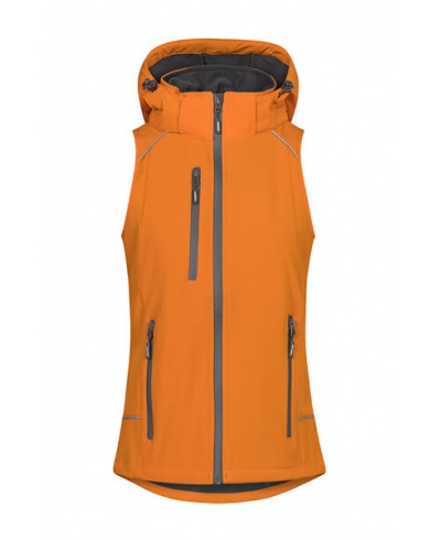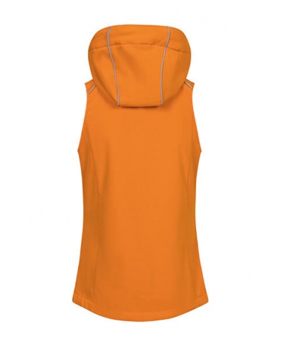 Funktionsweste mit abnehmbarer Kapuze und Lautstärkeregler, wasserdichten Reißverschlüssen, Kinnschutz, Napoleontasche, Tunnelzug am Saum mit innenliegenden Kordelzugstoppern, zwei Seitentaschen mit Reißverschluss und eingenähtem Schlüsselring in der Seitentasche. Die Weste hat reflektierende Besätze und Reißverschlussschieber. Das Material der Weste ist atmungsaktiv und wasserdicht (8.000 mm). Die Weste hat einen modernen Schnitt.