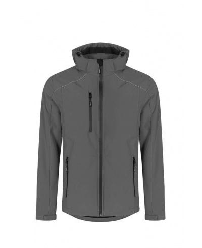 Funktionelle Softshelljacke mit abnehmbarer Kapuze und Lautstärkeregler verfügt über wasserdichte Reißverschlüsse, Kinnschutz, Napoleontasche, außerdem Ärmeltasche und verstellbare Ärmelbündchen mit Klettverschluss. Der Kordelzug am Saum ist innen mit Stielen verziert. Die Jacke verfügt über zwei Seitentaschen mit Reißverschluss, einen eingenähten Schlüsselring in der Seitentasche, reflektierende Paspeln und Reißverschlussschieber. Hurra wasserdicht, winddicht und atmungsaktiv. Es besteht aus weiß-elastischem gebondetem Polyesterfleece mit Elasthan für mehr Komfort. Die Jacke besticht durch ihren modernen Schnitt.