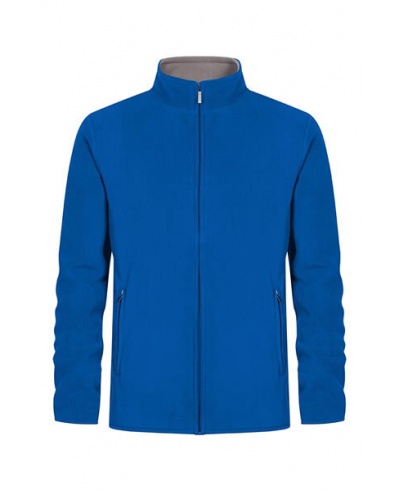 Die zweireihige Fleecejacke verfügt über einen durchgehenden verdeckten Reißverschluss, schmale Ärmelbündchen mit elastischem Saum und zwei seitliche Reißverschlusstaschen. Die Innenseite der Jacke ist in einer Kontrastfarbe gehalten und besteht aus Polyester mit beidseitiger Antipilling-Behandlung. Die Fleecejacke ist schmal geschnitten.