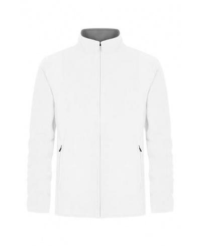 Die zweireihige Fleecejacke verfügt über einen durchgehenden verdeckten Reißverschluss, schmale Ärmelbündchen mit elastischem Saum und zwei seitliche Reißverschlusstaschen. Die Innenseite der Jacke ist in einer Kontrastfarbe gehalten und besteht aus Polyester mit beidseitiger Antipilling-Behandlung. Die Fleecejacke ist schmal geschnitten.