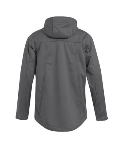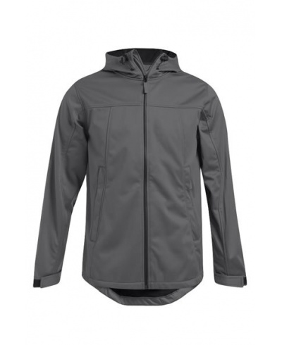 Die Softshelljacke mit klassischer Passform verfügt über einen wasserdichten Reißverschluss, Kinnschutz, volumenregulierende Kapuze mit elastischem Tunnelzugkordel und beidseitige Stopper. Die Jacke hat verstellbare Ärmelbündchen