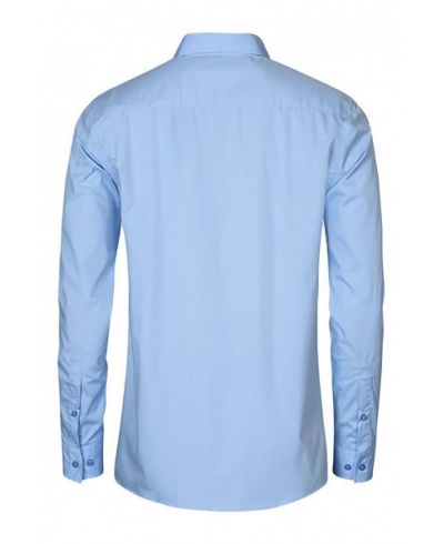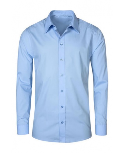 Ein klassisches Langarmhemd aus Popeline-Mischung mit verstärktem Kentkragen und Knopfleiste mit farblich abgestimmten Knöpfen sowie einer separaten Brusttasche und Ersatzknöpfen. Besonderheiten dieses Hemdes: 2-Knopf-verstellbare Manschette (Tonnenmanschette), lange Ärmelleiste mit Knopf, doppelter Rückensattel, umgeschlagener Saum, aus gekämmter Baumwolle mit Polyester. Das Hemd ist modern