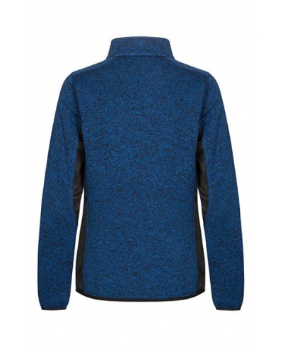 Die kontrastierende Strickfleece-Stehjacke ist innen gekämmt, hat Seiten- und Ärmeleinsätze sowie einen schmalen Saum unten am Körper und an den Ärmeln mit elastischem Einfassband, ebenfalls in Kontrastfarben. Die Jacke besteht aus Polyester und ist schmaler geschnitten.