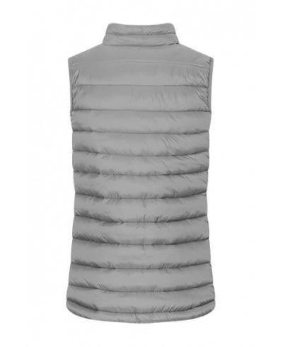 Gepolsterte Weste. Ausstattung: wasserdichte Reißverschlüsse, Stehkragen, Kinnschutz, Innentasche, durchgehender Reißverschluss, zwei seitliche Reißverschlusstaschen, Tunnelzug am Saum mit Innensteg, unsichtbarer Reißverschluss zur Verschönerung, neutrales Größenetikett. Die Weste besteht aus Nylon (Außen-/Innenmaterial) und Polyester (Wattierung). Die Weste hat einen modernen Schnitt.