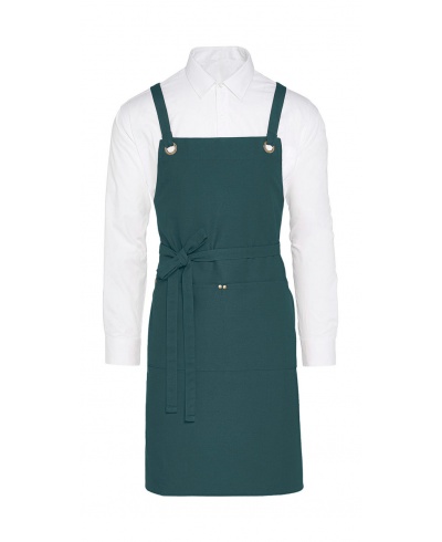 Mit ihren 2 Ösen und Nieten aus antikem Messing ist diese Canvas-Latzschürze mit überkreuzten Bändern auf der Rückseite etwas für die Meister! Erhältlich in modischen Farben, mit praktischer Vordertasche und idealer Länge für große Bewegungsfreiheit, ist es perfekt für professionelle Teams und modeorientierte Menschen. Bei 60° waschbar, außerdem farbecht und pflegeleicht, für ein langanhaltendes frisches Aussehen.