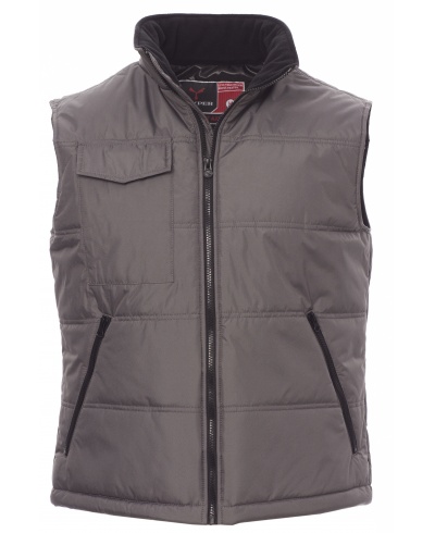 Quilted vest with contoured back and padding, finished with high density lining, inner fleece collar, two large pockets with zip, smartphone breast pocket and one inner pocket