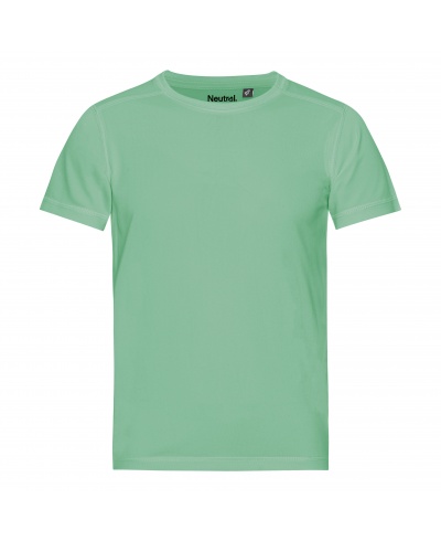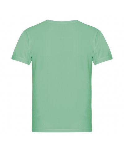 Normal geschnittenes Single-Jersey-T-Shirt mit kurzen Ärmeln und Quick Wick-Funktion. Rundhalsausschnitt mit doppellagigem Elasthan-Rippstrick und Nackenband innen. Mit Flatlock-Nähten an Schultern, Ärmeln und Saum. 155 g/m² leichte Qualität, hergestellt aus 100 % recyceltem Polyester.