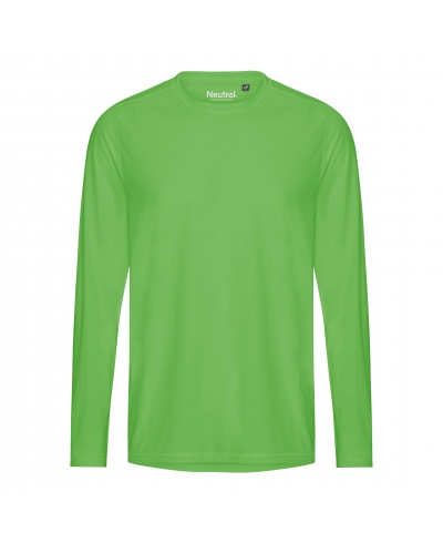Normal geschnittenes Single-Jersey-Langarm-T-Shirt mit Quick Wick-Funktion. Rundhalsausschnitt mit doppellagigem Elasthan-Rippstrick und Nackenband innen. Mit Flatlock-Nähten an Schultern, Ärmeln und Saum. 155 g/m² leichte Qualität, hergestellt aus 100 % recyceltem Polyester.