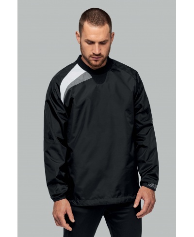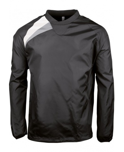 100% Polyamid Oxford, PU-Beschichtung. Wasserabweisend. Feinripp 1X1. Rundhals für leichtes Anziehen. Raglanärmel. Einsätze in Kontrastfarbe an Körper und Ärmelbund. Gummizug an Ärmelbund. Kordelzug am Hüftbund.
