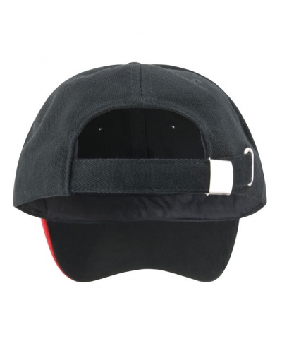 350 g/qm • 100% Baumwolle • 6-teilig • Luftösen • Kontrastfarbene Einsätze zwischen den beiden vorderen Panels sowie bogenförmiger Kontrast auf Schirm • Verstellbarer Klemmverschluss.