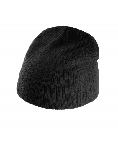100% Acryl. Strickmütze in einfachem Rippenmuster.
