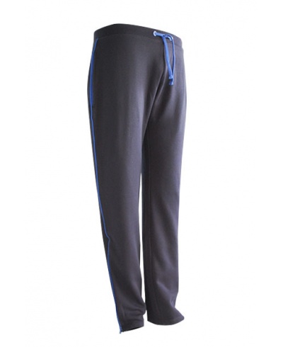 Kid pants. Elastic waistband with drawcord and side pockets in contrast. Piping and zipper in the bottom, also in contrast.