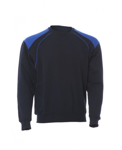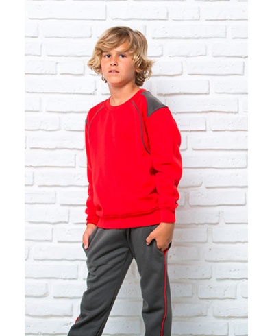 Zweifarbiges Erwachsenen- und Kindersweatshirt. Mit kontrastierendem Besatz und Halbmond unter dem Kragen auf der Rückseite.