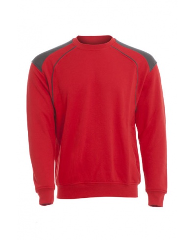 Zweifarbiges Erwachsenen- und Kindersweatshirt. Mit kontrastierendem Besatz und Halbmond unter dem Kragen auf der Rückseite.