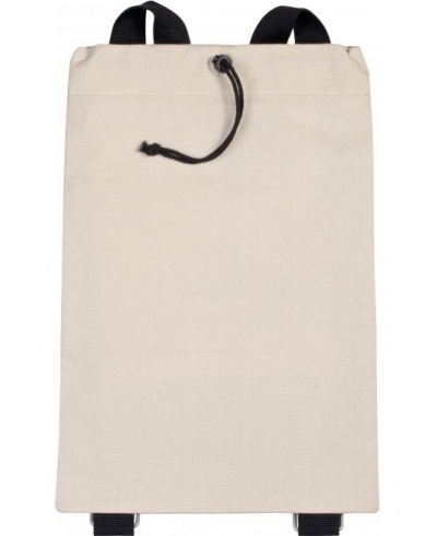 Rucksack aus 310 g/m² Baumwollcanvas mit einstellbaren Riemen aus Baumwollpolyester, Metallschnallen, Reißverschlusstasche am Rücken, Kordelzug und Stopper.