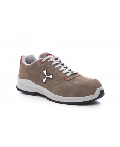 Niedriger Herren-Sicherheitsschuh, Obermaterial aus wasserabweisendem und atmungsaktivem, gelochtem Spaltleder, atmungsaktives und abriebfestes Innenfutter (auf der gesamten Innenfläche), 1+1 metallfreie Ösen und 6+6 verstärkte Schnürsenkellöcher, reflektierende Einsätze an der Hinterkappe und auf der Außenseite der Spitze, Zehenschutzkappe aus druckgegossenem Aluminium, herausnehmbare Einlage Ortholite X40 016 ESD, zertifizierte durchtrittsichere Sohle aus Verbundgewebe, Versteifungselement zum Schutz vor Verdrehungen, hufeisenförmiger Spitzenschutz, Zwischensohle aus federleichtem Polyurethan ESD, Dämpfungssystem MASTER BALANCE aus PU-Polyether von hoher Bruchfestigkeit und ausgewogener Dichte, X-TRAIL-GRIP-Sohle aus TPU ESD mit Fersen- und Zehenschutz