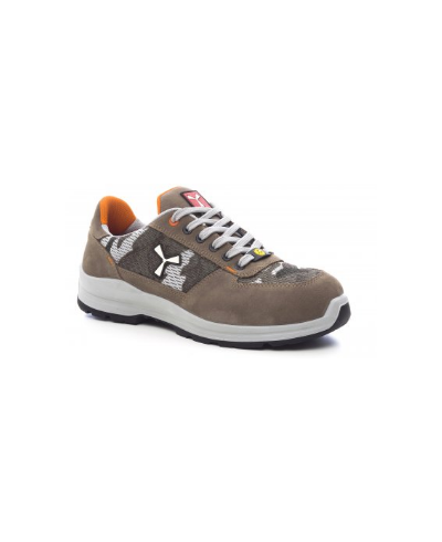 Niedriger Herren-Sicherheitsschuh, Obermaterial aus wasserabweisendem Spaltleder mit atmungsaktiven Einsätzen aus technischem Stoff, atmungsaktives und abriebfestes Innenfutter (auf der gesamten Innenfläche), 6+6 metallfreie Ösen, reflektierender Einsatz an der Hinterkappe, Zehenschutzkappe aus druckgegossenem Aluminium, herausnehmbare Einlage Ortholite X40 016 ESD, zertifizierte durchtrittsichere Sohle aus Verbundgewebe, Versteifungselement zum Schutz vor Verdrehungen, hufeisenförmiger Spitzenschutz, Zwischensohle aus federleichtem Polyurethan ESD, Dämpfungssystem MASTER BALANCE aus PU-Polyether von hoher Bruchfestigkeit und ausgewogener Dichte, X-TRAIL-GRIP-Sohle aus TPU ESD mit Fersen- und Zehenschutz