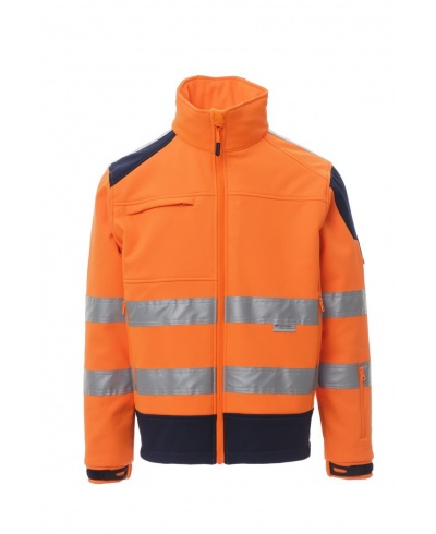WP/MM 8000 MVP/GR 5000 Taillierte zweifarbige Herren-Warnschutz-Jacke, 3M-Streifen, langer versiegelter SBS-Reißverschluss, regulierbare Ärmelbündchen mit Klettverschluss, 2 Seitentaschen mit Reißverschluss, 1 Brusttasche, abtrennbares und verschließbares Ausweisfach und 1 Tasche auf dem linken Arm