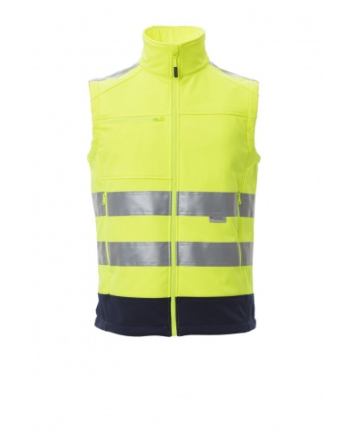 WP/MM 8000 MVP/GR 800 Taillierte zweifarbige Herren-Warnschutz-Weste, 3M-Streifen, langer versiegelter SBS-Reißverschluss, 2 Seitentaschen mit Reißverschluss, 1 Brusttasche, abtrennbares und verschließbares Ausweisfach