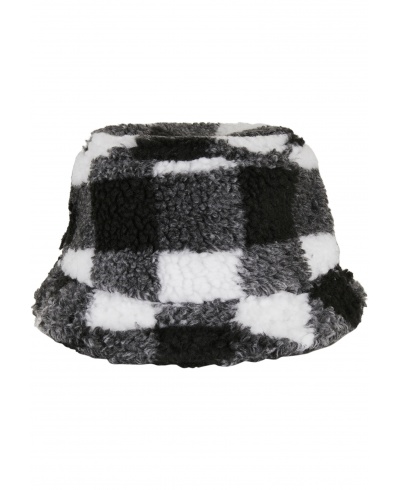 Bucket Hat neu gestaltet: Dieser Hut präsentiert sich in flauschigem Sherpa-Stoff und einem großen, harmonischen Karomuster. Außerdem bietet es eine abgeschrägte Krempe mit Ziernähten und eine Einheitsgröße. Das Material des Fischerhutes ist Polyester und Acryl.