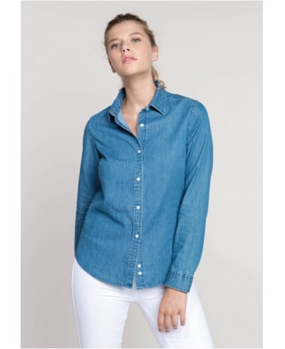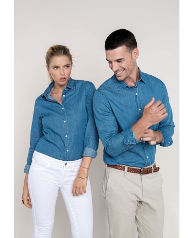 100 % Baumwoll-Chambray. Leichter Denim-Jeansstoff, weich und bequem. Modischer Slim-Fit Schnitt. Auffällig kontrastierendes Nackenband. Kontrastfarbene Knöpfe. Weitenverstellbare Manschetten.