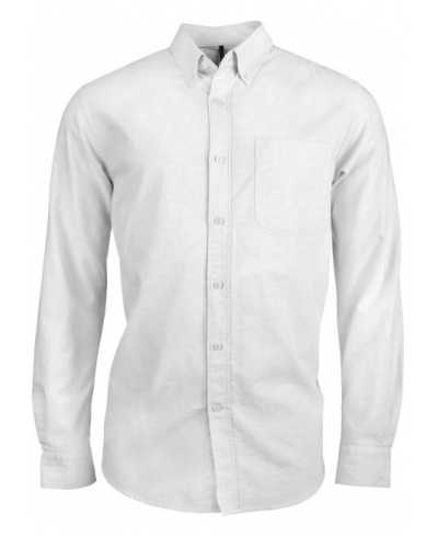 100% Baumwolle. Körpernaher Schnitt. Verstärkter Button-Down-Kragen. Innenseite des Kragens und Ärmelbund in Kontrastfarbe. Ton-in-Ton Knöpfe. Brusttasche mit abrundeten Ecken auf der linken Seite. Doppelte rückwärtige Schulterpasse. Abgeschrägte Manschetten mit 2 Knöpfen. 2 Ersatzknöpfe. Abgerundeter Saum.