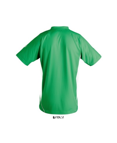 QUALITÄT: 100% Interlock-Polyester; Origineller Kragen mit kontrastierender Paspel, Raglanärmel, große Einsätze aus Piqué-Stoff an den Seiten, atmungsaktiver Mesh an den Ärmeln, hinten abgerundet und etwas länger, Logo kontrastierend gestick, zur Sublimation geeignet