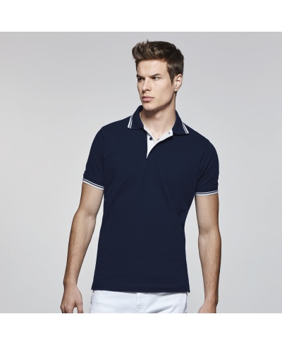 Kurzarm Poloshirt. 3er-Knopfleiste mit gleichfarbigen Knöpfen. Knopfleiste und Seitenschlitze innen, sowie Doppelstreifen am Rippstrickkragen, Ärmelbündchen und Nackenband gleichfarbig.