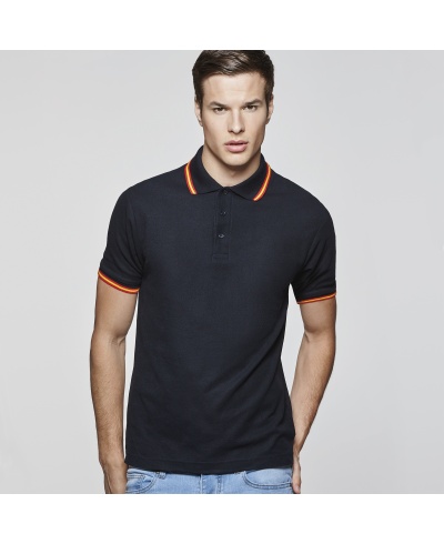 Kurzärmliges Polo-shirt, Kragen und Ärmelbündchen aus Jacquard, 3-er Knopfleiste. Verstärkter Nackenband. Flagge-Sticklogo auf Rücken.