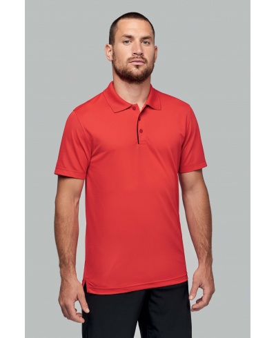 95% Polyester / 5% Lycra ®. Atmungsaktives und schnelltrocknendes Antistatik-Gewebe. Piqué-Qualität. Rippstrickkragen. 3er Knopfleiste mit Kontrast-Paspel. Kontrast-Nackenband. Seitenschlitze. Doppelnahtverarbeitung an Ärmeln und Bund.