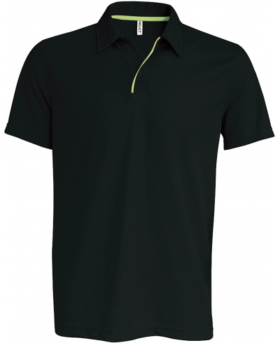 95% Polyester / 5% Lycra ®. Atmungsaktives und schnelltrocknendes Antistatik-Gewebe. Piqué-Qualität. Rippstrickkragen. 3er Knopfleiste mit Kontrast-Paspel. Kontrast-Nackenband. Seitenschlitze. Doppelnahtverarbeitung an Ärmeln und Bund.