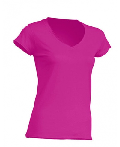 Damen T-Shirt, V-Neck, tailliert, kurzarm, angeschnittene Ärmel. Kragen Ärmel und Bund offen.