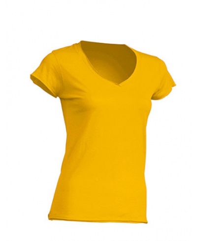 Damen T-Shirt, V-Neck, tailliert, kurzarm, angeschnittene Ärmel. Kragen Ärmel und Bund offen.