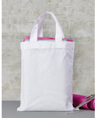 Diese Mini-Tragetasche aus 100 % Baumwolle hat so viele Verwendungsmöglichkeiten, vom Einzelhandel bis zum Verschenken. Fügen Sie Ihr Markenlogo hinzu und es ist auch das perfekte Give-Away für jede Veranstaltung.