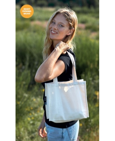 Material: 100% Bio-Fairtrade-Baumwolle, schweres Panama-Gewebe; Gewicht: 300 g/m²; Extra schweres Panama-Gewebe. Lange Griffe (50 cm). An Spannungspunkten verstärkt. Boden & Seitenzwickel. Größe: 28 x 26 cm. Neutral® & Fairtrade Flaglabels an der Seite; Zertifikate: OEKO-TEX® STANDARD 100, 100% CERTIFIED ORGANIC COTTON, FAIR WEAR, EU ECOLABEL, SA8000, NEUTRAL® RESPONSIBILITY