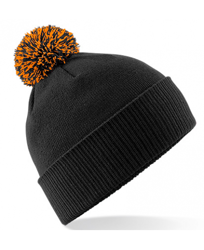 Tear-away Label für einfaches Neulabeln, Doppellagiger Strick, Zweifarbiger Pompon, Doppelfunktion - mit Umschlag als Mütze oder ohne Umschlag als Slouch-Beanie, Gerippter Umschlag