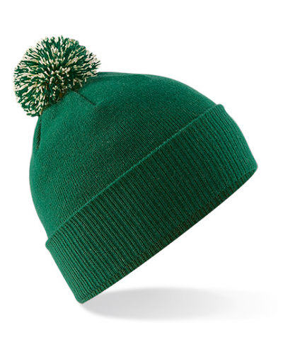 Tear-away Label für einfaches Neulabeln, Doppellagiger Strick, Zweifarbiger Pompon, Doppelfunktion - mit Umschlag als Mütze oder ohne Umschlag als Slouch-Beanie, Gerippter Umschlag