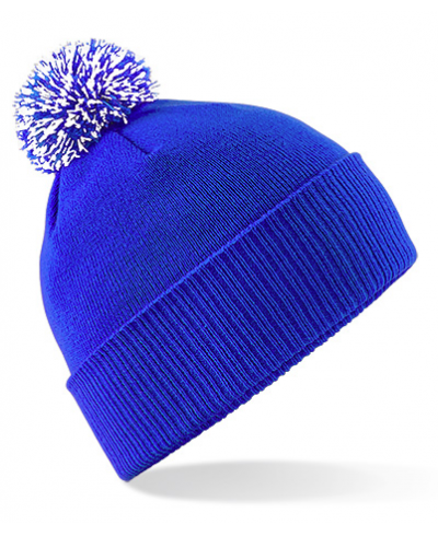 Tear-away Label für einfaches Neulabeln, Doppellagiger Strick, Zweifarbiger Pompon, Doppelfunktion - mit Umschlag als Mütze oder ohne Umschlag als Slouch-Beanie, Gerippter Umschlag