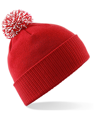 Tear-away Label für einfaches Neulabeln, Doppellagiger Strick, Zweifarbiger Pompon, Doppelfunktion - mit Umschlag als Mütze oder ohne Umschlag als Slouch-Beanie, Gerippter Umschlag