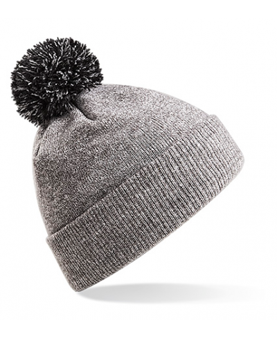 Tear-away Label für einfaches Neulabeln, Doppellagiger Strick, Zweifarbiger Pompon, Doppelfunktion - mit Umschlag als Mütze oder ohne Umschlag als Slouch-Beanie, Gerippter Umschlag