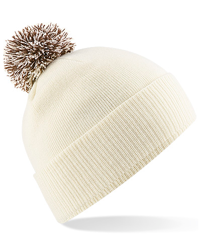 Tear-away Label für einfaches Neulabeln, Doppellagiger Strick, Zweifarbiger Pompon, Doppelfunktion - mit Umschlag als Mütze oder ohne Umschlag als Slouch-Beanie, Gerippter Umschlag