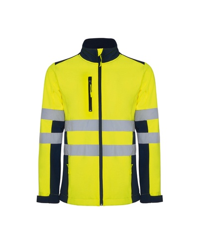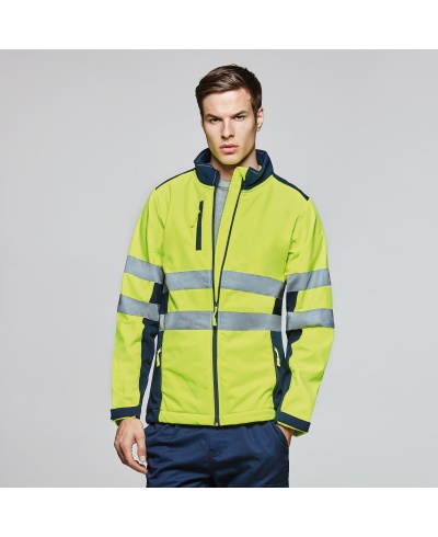 Zweifarbige hochsichtbare Soft Shell Jacke.