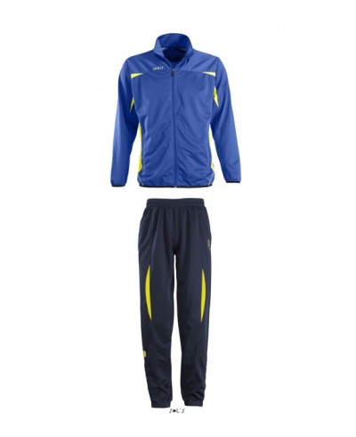 Qualität: 100% glänzender Interlock-Polyester; Jacke - Abschluss an Taille und Ärmeln mit elastischem Schrägband, 2 Reißverschlusstaschen große, atmungsaktive Mesh-Einsätze an Seiten und Ärmeln, Ärmelabschluss mit elastischem Schrägband, branded Zipper Pull, Logo & Marke kontrasterend gestickt, Hose elastischer Bund mit Zugkordel, kontrastierende, atmungsaktive Mesh-Einsätze, 2 Reißverschlusstaschen Logo und Marke kontrastierend gestickt