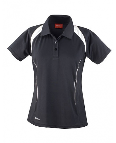 145 g/qm • 100% Polyester • Funktionspolo aus Cool-Dry-Netz in Waffeloptik • Nackenband • Raglanärmel mit Kontrasteinsatz • 3er-Knopfleiste • Atmungsaktive Struktureinsätze an den Seiten • Vorderseite mit aufgedrucktem Punkte-Muster und Spiro-Logo unten rechts • Verlängerter Rücken • Doppelnaht an Ärmelabschluss und Bund • Seitennähte • Für Stick und Druck geeignet.