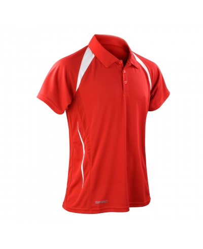 145 g/qm • 100% Polyester • Funktionspolo aus Cool-Dry-Netz in Waffeloptik • Nackenband • Raglanärmel mit Kontrasteinsatz • 3er-Knopfleiste • Atmungsaktive Struktureinsätze an den Seiten • Vorderseite mit aufgedrucktem Streifen-Muster und Spiro-Logo unten rechts • Verlängerter Rücken • Doppelnaht an Ärmelabschluss und Bund • Seitennähte • Für Stick und Druck geeignet.