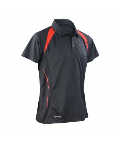 145 g/qm • 100% Polyester • Funktionspolo aus Cool-Dry-Netz in Waffeloptik • Nackenband • Raglanärmel mit Kontrasteinsatz • 3er-Knopfleiste • Atmungsaktive Struktureinsätze an den Seiten • Vorderseite mit aufgedrucktem Streifen-Muster und Spiro-Logo unten rechts • Verlängerter Rücken • Doppelnaht an Ärmelabschluss und Bund • Seitennähte • Für Stick und Druck geeignet.