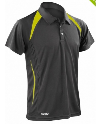 145 g/qm • 100% Polyester • Funktionspolo aus Cool-Dry-Netz in Waffeloptik • Nackenband • Raglanärmel mit Kontrasteinsatz • 3er-Knopfleiste • Atmungsaktive Struktureinsätze an den Seiten • Vorderseite mit aufgedrucktem Streifen-Muster und Spiro-Logo unten rechts • Verlängerter Rücken • Doppelnaht an Ärmelabschluss und Bund • Seitennähte • Für Stick und Druck geeignet.