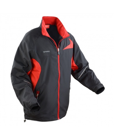 100% Polyester, 50D Microfaser (COOL DRY) • Hoher Kragen, innen in Kontrastfarbe • Raglanärmel • Full Zip in Kontrastfarbe • Reflektierendes Logo auf rechter Brustseite • Kontrasteinsatz auf linker Brustseite und an den Seiten • 2 Seitentaschen mit Zip in Kontrastfarbe • Reflektierende Streifen am Unterarm und hinten über die Schultern • Durch Klettverschluss verstellbare Ärmelbündchen • Abgerundeter, verlängerter Rücken • Kordelzug im Bund • UV-Schutz • Antibakteriell • Antistatisch • Wasserabweisend • Windabweisend • Atmungsaktiv.